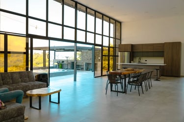En este recorrido de M2 se aprecia un diseño arquitectónico contemporáneo, caracterizado por su estructura minimalista. Los ventanales aportan una sensación de amplitud y conexión con el entorno, mientras que los volúmenes se disponen de manera que maximizan la entrada de luz natural. El interior destaca por sus líneas puras, uso de materiales nobles y una distribución funcional y diáfana que unifica las áreas sociales. El resultado es una casa elegante, atemporal y en armonía con su paisaje, reflejo del enfoque de M2 en viviendas con entornos naturales